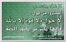 11) عن أبي ذر قال: قال لي رسول الله صلى الله عليه وسلم ألا أدلك على كنز من كنوز الجنة، قلت بلى يا رسول الله، قال لا حول ولا قوة إلا بالله. رواه أحمد وابن ماجه وقال البوصيري في مصباح الزجاجة: هذا إسناد صحيح رجاله ثقات.