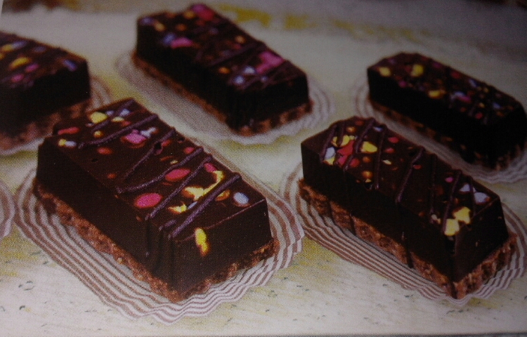 - نضع طبقة من الاقراص الملونة في السيلكون(قالب به خانات مستطيلة بنفس قياس مرشم البيسكوي) .