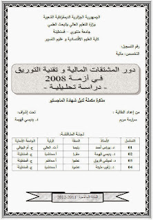 مذكرة مكملة مقدمة لنيل شهادة الماجيستير، تخصص مالية.