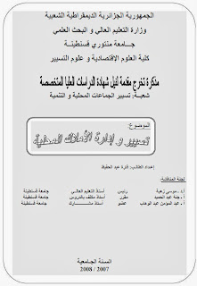 مذكرة مقدمة لنيل شهادة الدراسات العليا المتخصصة.