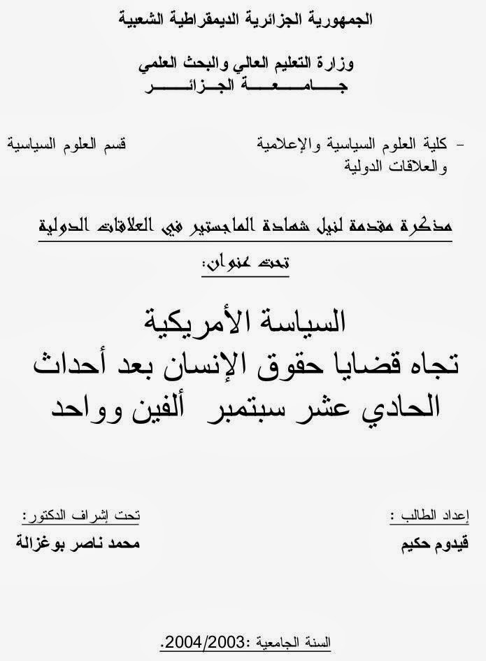 • العنوان: السياسة الأمريكية تجاه قضايا حقوق الإنسان بعد أحداث 11/9/2001.