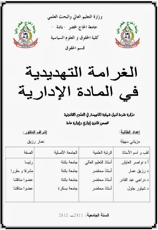 - العنوان: الغرامة التهديدية في المادة الإدارية.