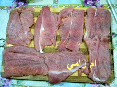 نحضر شرائح اسكالوب نبسطها بالحلالة او المطرقة حتى تصبح رفيعة