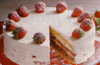 - Puis, par-dessus, mettez le disque de biscuit du milieu, tartinez-le de confiture, recouvrez-le de fraises en lamelles et de crème fouettée, terminez en ajoutant le disque de biscuit de haut