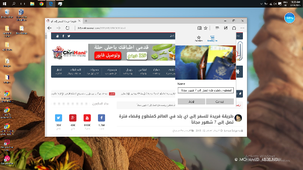 في الشريط أعلى يمين الشاشة في متصفح "Edge " ، يمكن أن تجد الرمز الذي يمثل قطعة من الورق والقلم. بالنقر على ذلك، تقوم بتنشيط ميزة الملاحظات والشروحات، التي تمكنك من تحديد النص، وانشاء التعليقات وأيضا رسومات يدوية. هذه الميزة مفيدة جدا بالنسبة لأولئك الذين يرغبون في تبادل صور شاشاتهم مع أصدقائك لشرح اي جزء في اي موقع بدون استخدام برامج اخرى .