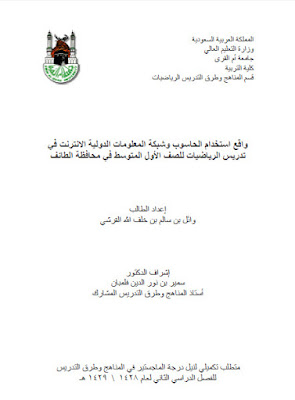 عنوان الكتاب : واقع استخدام الحاسوب وشبكة المعلومات الدولية الانترنت في تدريس الرياضيات للصف الأول المتوسط في محافظة الطائف