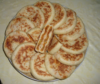 تحضر العجين بخلط جميع المواد المدكورة أعلاه بماء دافئ حتى نحصل على عجينة متماسكة تدلك جيدا حتى تصير مطاطية.