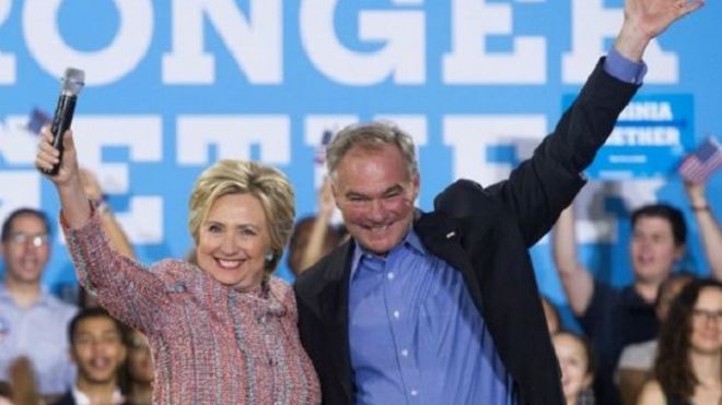 اختارت هيلاري كلينتون المرشحة الديمقراطية في انتخابات الرئاسة الأمريكية تيم كين، وهو سيناتور معتدل من فرجينيا، ليخوض الانتخابات إلى جوارها نائبا لها.