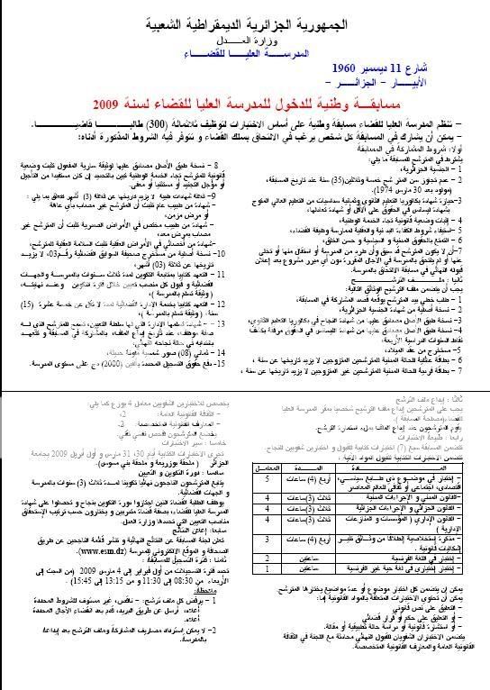 اعلان عن التسجيل للمسابقة الوطنية للقضاء دورة 2009