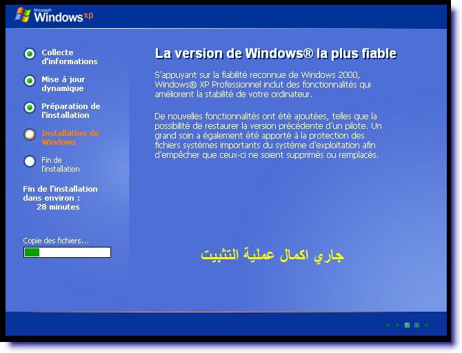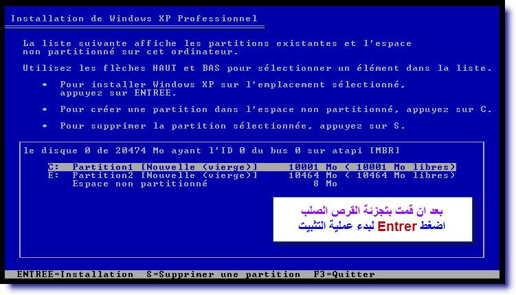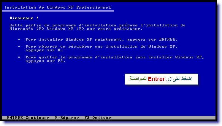 قم بادخال CD Windows Xp في Lecteur CD أعد تشغيل الجهاز