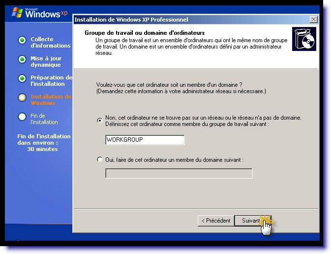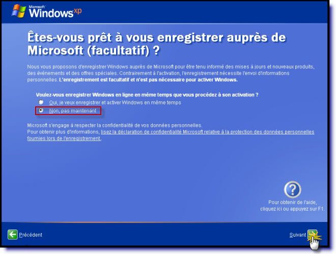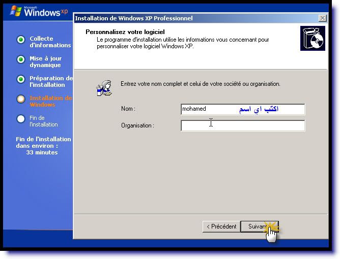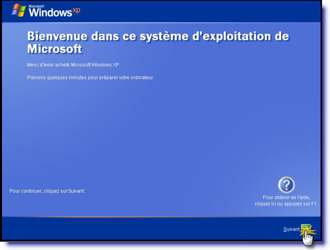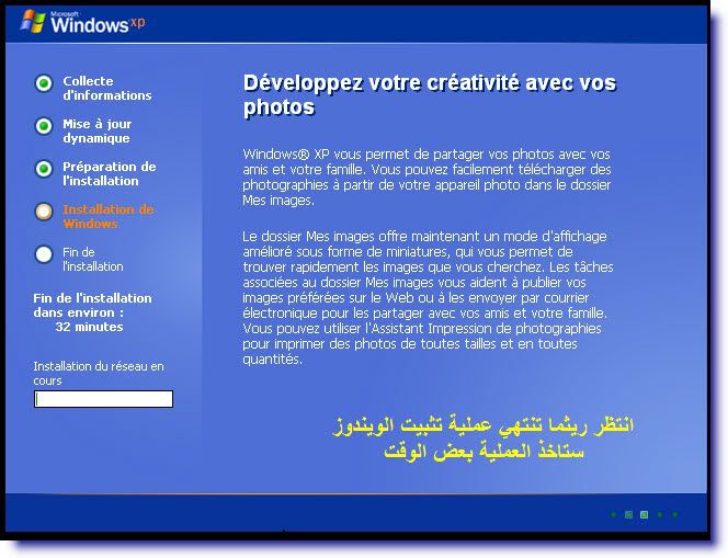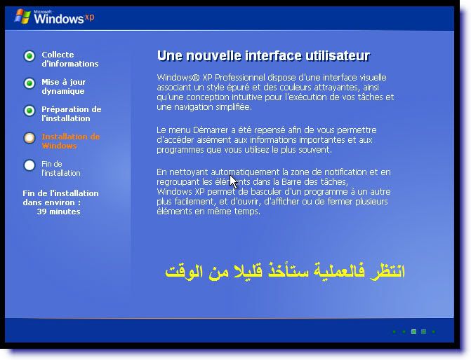 ملاحظة : قم بادخال CD الWindows في Lecteur CD وأعد تشغيل الجهاز فإذا ظهرت الصفحة التالية