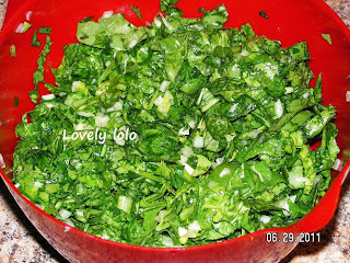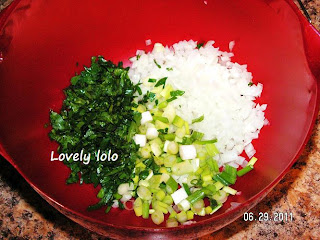 نخلط الخضراوات مع بعض (نوعين بصل +بقدونس)