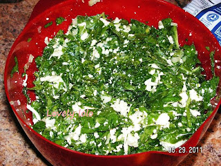 نقطع السبانخ ونخلطه مع باقي الحشوة