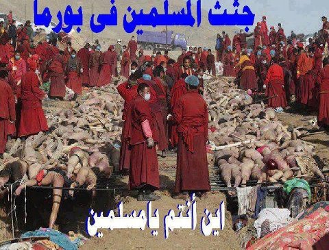 ( قُتِلَ أَصْحَابُ الأُخْدُودِ .النَّارِ ذَاتِ الْوَقُودِ . إِذْ هُمْ عَلَيْهَا قُعُودٌ .وَهُمْ عَلَى مَا يَفْعَلُونَ بِالْمُؤْمِنِينَ شُهُودٌ . وَمَا نَقَمُوا مِنْهُمْ إِلاَّ أَن يُؤْمِنُوا بِاللَّهِ الْعَزِيزِ الْحَمِيدِ ) كان هذا في زمن لم يكن فيه عدد المسلمين فوق المليار . و اليوم يحدث لاخواننا في بورما نفس الشيء ،ولكن المسلمين في غيبوبة عما يحدث . يلهون و يمرحون ،يتمتعون بمشاهدة افلام امريكا (اليهودية ) و اغاني ر يحانة و امينام المسونيين .... فهل يا امة الاسلام تنامي و تسعدي بالاحلام و الرياضة و الافلام و تتركي الامر لله ؟