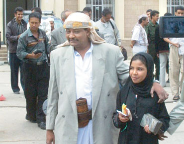 وبحالة مزرية خرج الأب حافي القدمين من مبنى المحكمة وبجانبه ابنته نجود، التي لم تفارقها ابتسامة هادئة ظلت على محياها في يوم خلاصها، وبصوت متعب أجاب الأب عن سؤال ل”الخليج” عن ما يريده لابنته بعد هذه الواقعة، بقوله: “هي ستذهب الآن عند خالها وأريدها أن تعلم أنني زوجتها خوفاً، بعد أن أخذوا بناتي وهددوني وسلبوا أموالي وكل ما معي، وسأبقى في صنعاء ولن أعود إلى حجة فلم يبق معي شيء”.