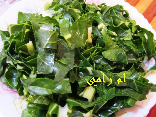 كمية من اوراق السلق نقطعها ونفورها او نغليها