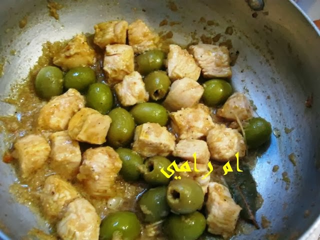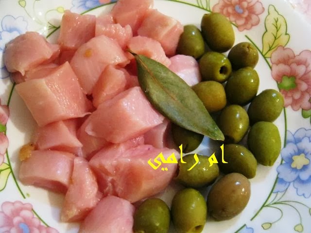نضيف الدجاج والزيتون الاخضر وورقة رند