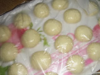 نشكل عجين الملويات كويرات ونتركهم يرتاحو ونغطيهم ببلاستيك