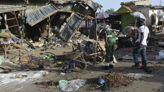 وكان 10 أشخاص قتلوا عندما انفجرت عبوة كانت في حوزة فتاة يعتقد أنها في الثانية عشرة من العمر، في سوق أسبوعي في قرية وغير، جنوب داماتورو، عاصمة ولاية يوبي.