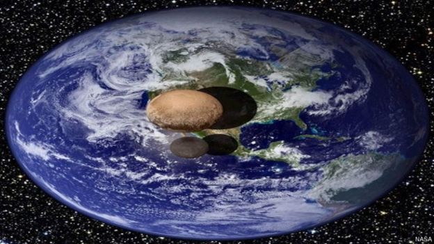 مقارنة بين حجم كوكب بلوتو وقمره شارون وحجم كوكب الأرض