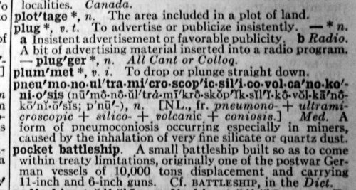 تم نشر الكلمة أول مرة في صحيفة "نيويورك هيرالد" في نفس العام, و في عام 1939 تم إضافتها في أول قاموس "Webster's New Internaitonal Dictionary, 2nd ed" كما هو موضح بالصورة بالأسفل.