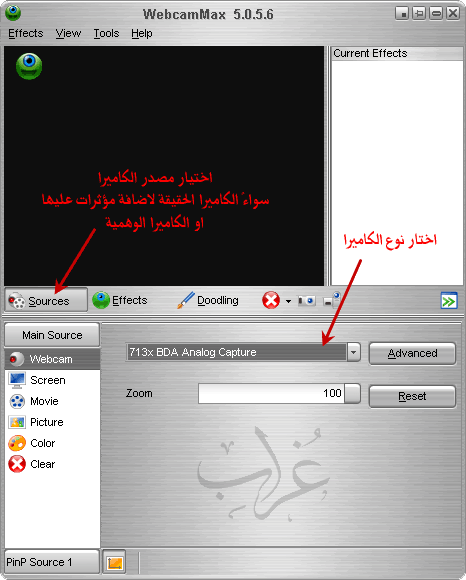 لمشاهدة التأثيرات المتاح عملها و تطبيقها مع كاميرا الويب الحقيقة