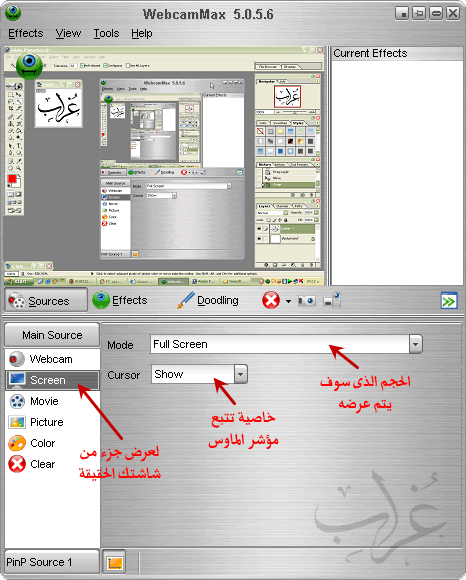 و من مميزات البرنامج الرائعة بانه ممكن عرض شاشتك على الكمبيوتر فى كاميرا الويب